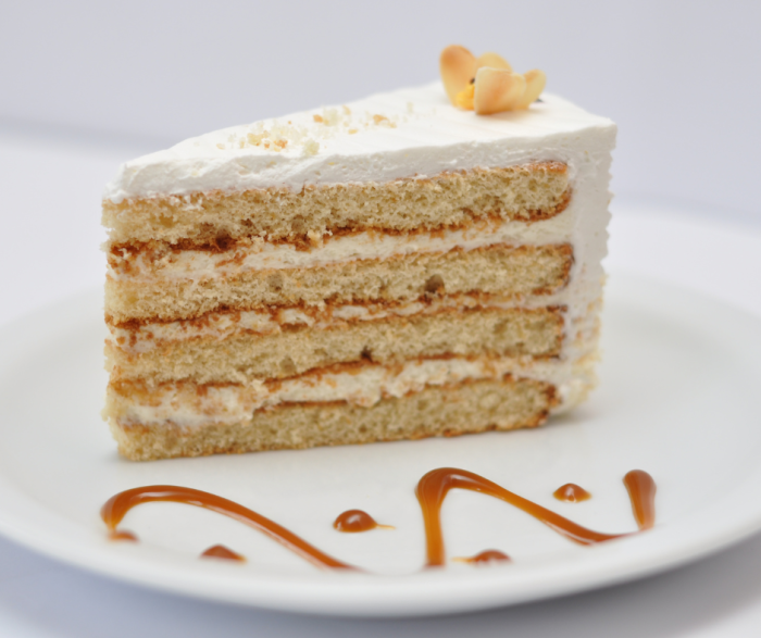 Cubre el pastel con crema de vainilla y un toque de cajeta.