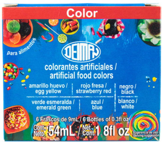 PZA CAJILLA MULTICOLOR NEON P/FONDANT 370L C/6 PIEZAS/54ML DEIMAN
