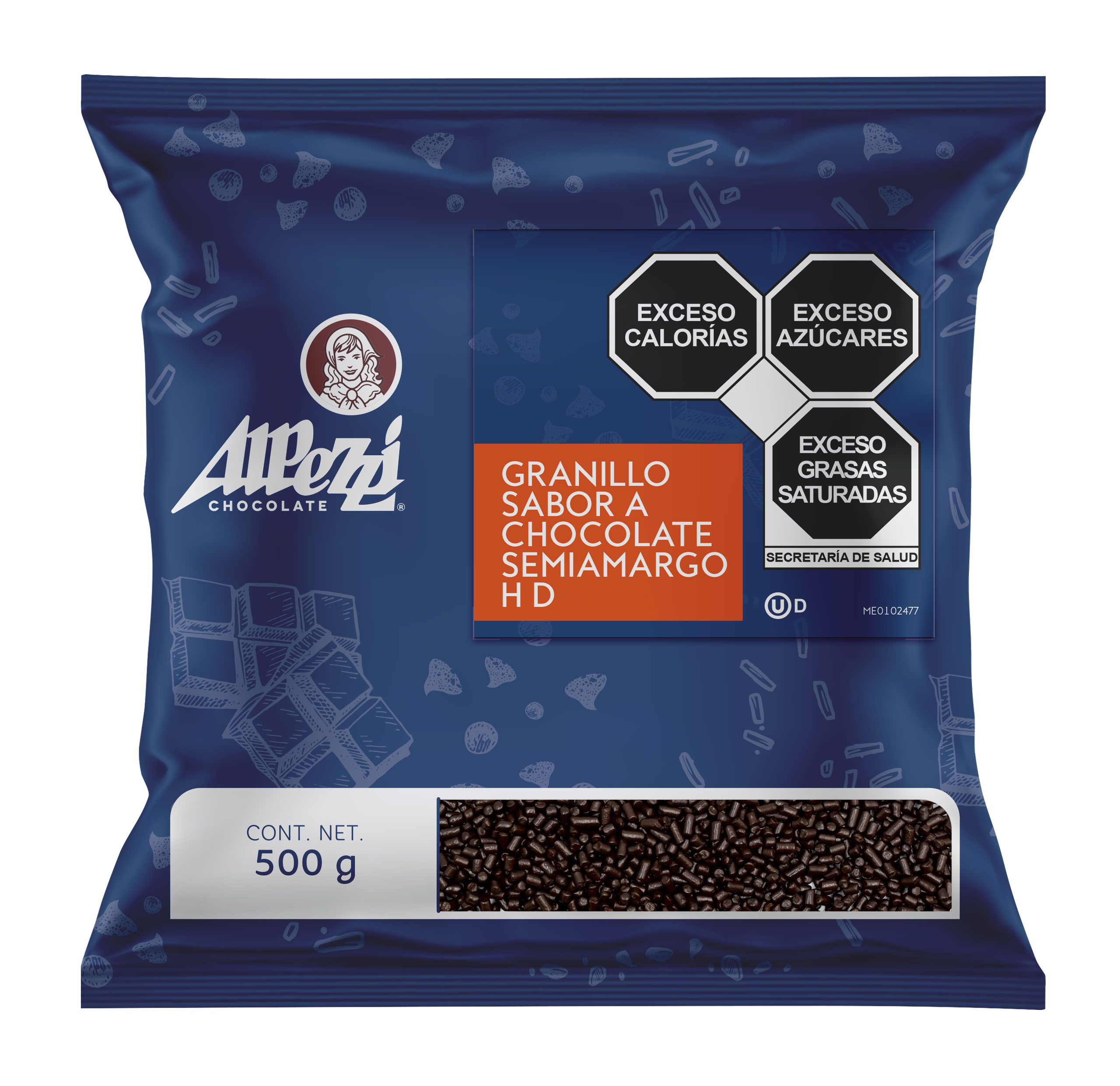 PAQ C/500GRS GRANILLO CHOCOLATE SEMIAMARGO “HD” ALPEZZI